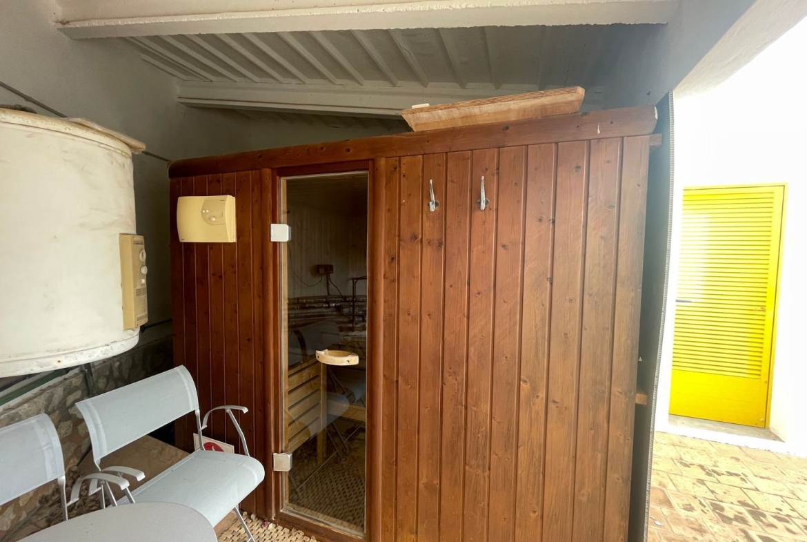 Villa en Cala Murada con bonitas vistas al mar y a tan solo unos minutos a pie de la playa.La casa esta rodeada de zona verde, por lo tanto ofrece mucha privacidad a la vez que se puede llegar a pie a supermercados, restaurantes y tiendas.Con 5 dormitorios, 3 baños, garage, sauna, piscina con zona de barbacoa, gran jardín, chimenea etc esta casa es perfecta para disfrutar durante todo el año.La casa se distribuye en dos plantas, el dormitorio master esta en la segunda planta. Desde aquí disfrutara de unas privilegiadas vistas al mar, tanto del dormitorio como de su terraza.La casa ofrece suficiente espacio para familiares e invitados.Su amplio garage cerrado ofrece suficiente espacio para un coche, scooters y bicicletas.Es posible hacer una pequeña reforma con nosotros y dejar la casa totalmente nueva a su gusto, ofreciéndole todo el confort necesario igual que una casa de lujo.