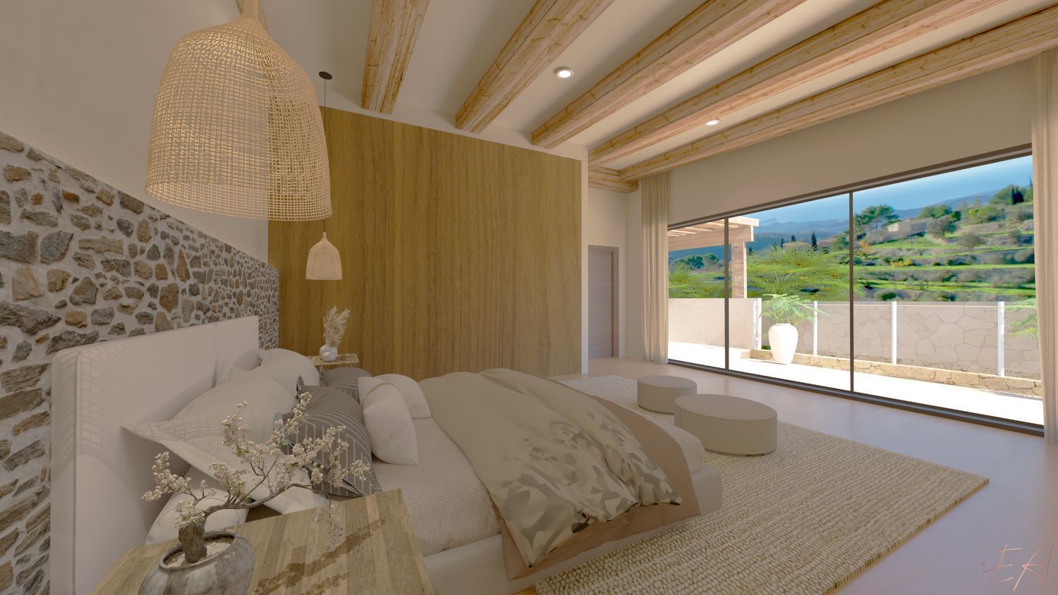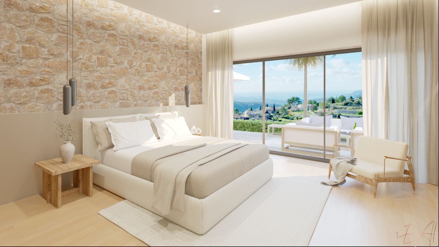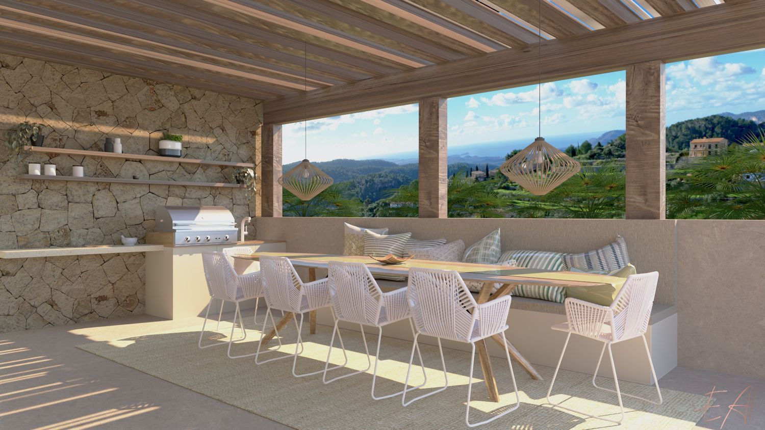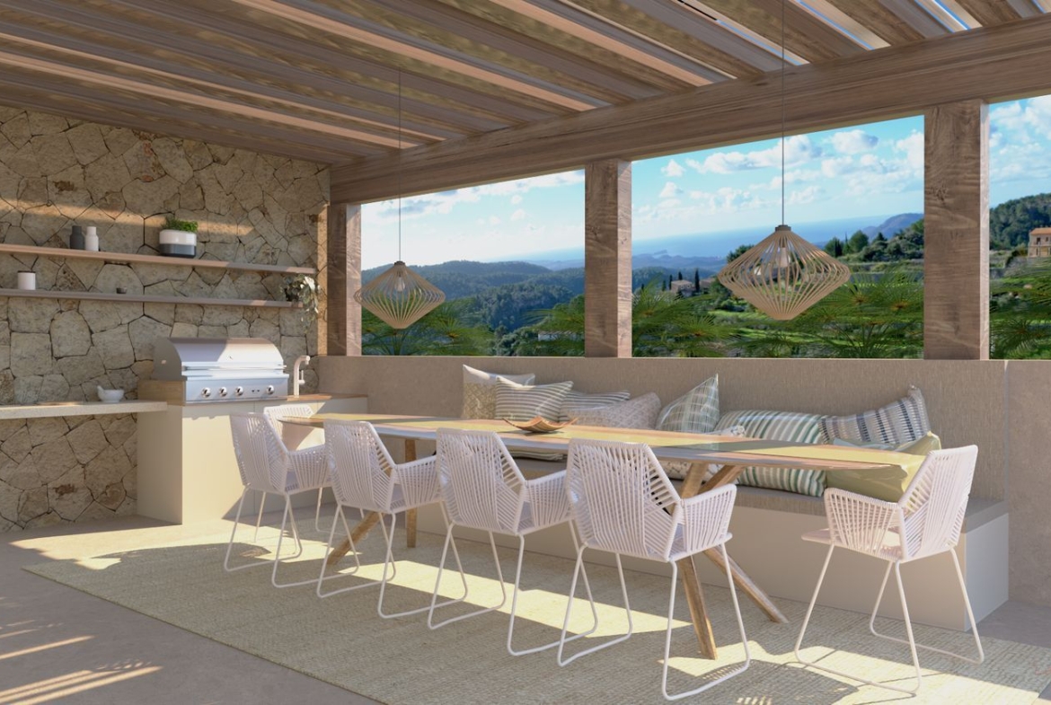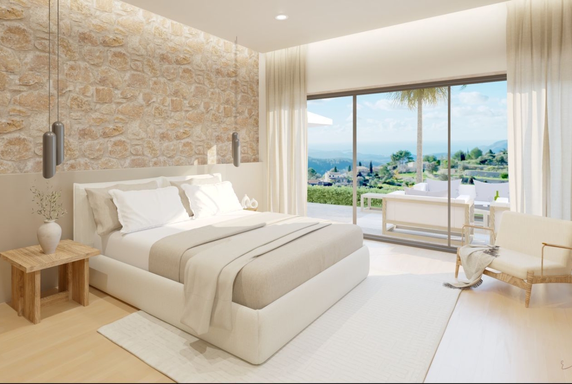 Os presentamos esta Villa en el pintoresco pueblo de Galilea. El diseño de esta casa cautiva por la combinación de elementos modernos con la típica arquitectura mallorquina. Las vistas llegan hasta la bahía de Santa Ponsa y ofrecen un hermoso panorama. En la planta superior de la villa se encuentra el salón-comedor de planta abierta con chimenea, una lujosa cocina totalmente equipada y el aseo de invitados. Una habitación doble con bailo en suite completan este nivel.Al nivel de la piscina, con su amplia terraza y zona de estar, se puede acceder desde los tres dormitorios, cada uno de los cuales tiene su propio baño completo.El equipamiento incluye elementos de hogar inteligente, aire acondicionado y calefacción por suelo radiante.