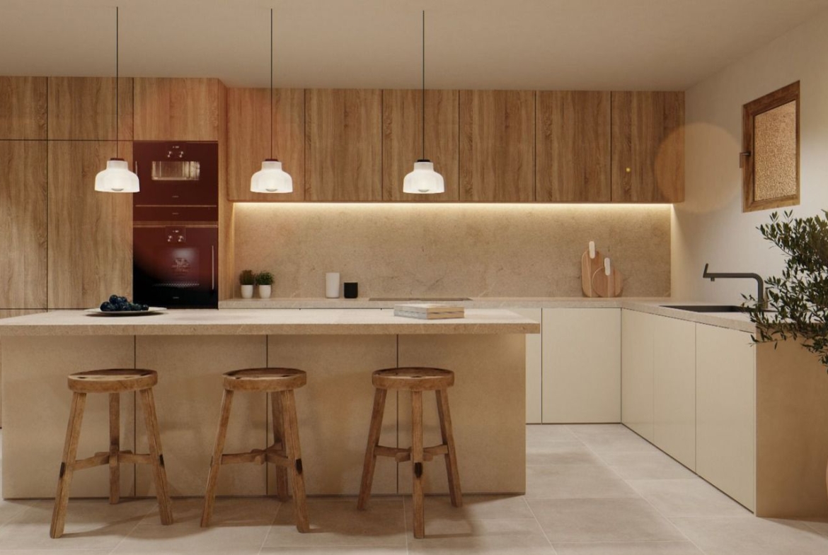 Al entrar en la propiedad, un amplio y luminoso hall de entrada le da la bienvenida, dando paso a un acogedor y sofisticado salón. La planta baja se caracteriza por un espectacular espacio diáfano que integra a la perfección el salón, el comedor y una cocina de diseño, perfecta para quienes disfrutan de las cosas buenas de la vida. La cocina, equipada al más alto nivel, se abre a dos hermosas terrazas, que permiten disfrutar de las agradables vistas al jardín y a la piscina infinita.