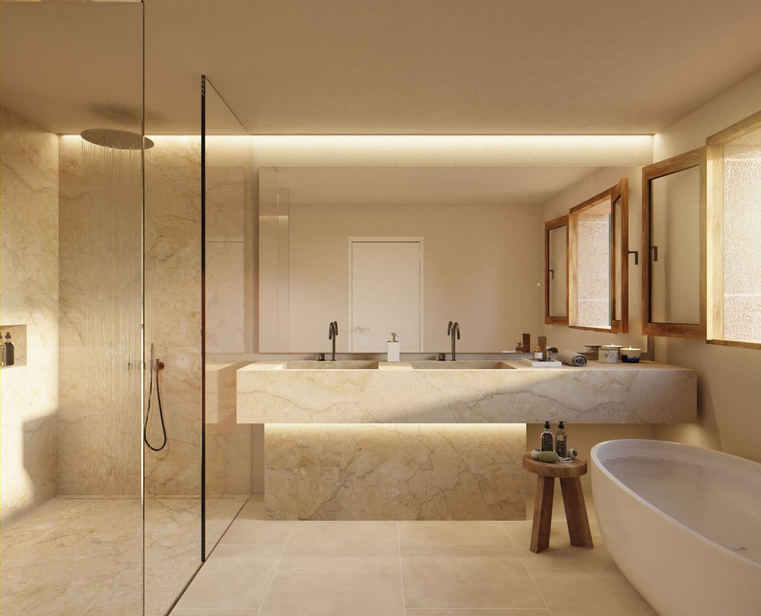 En la planta superior, hay tres amplios dormitorios, cada uno con su propio cuarto de baño, diseñados para ofrecer el máximo confort y privacidad. Dos de estos dormitorios disfrutan de impresionantes vistas panorámicas, mientras que el dormitorio principal destaca por su acceso a una soleada terraza privada que ofrece magníficas vistas, creando un refugio personal de serenidad.