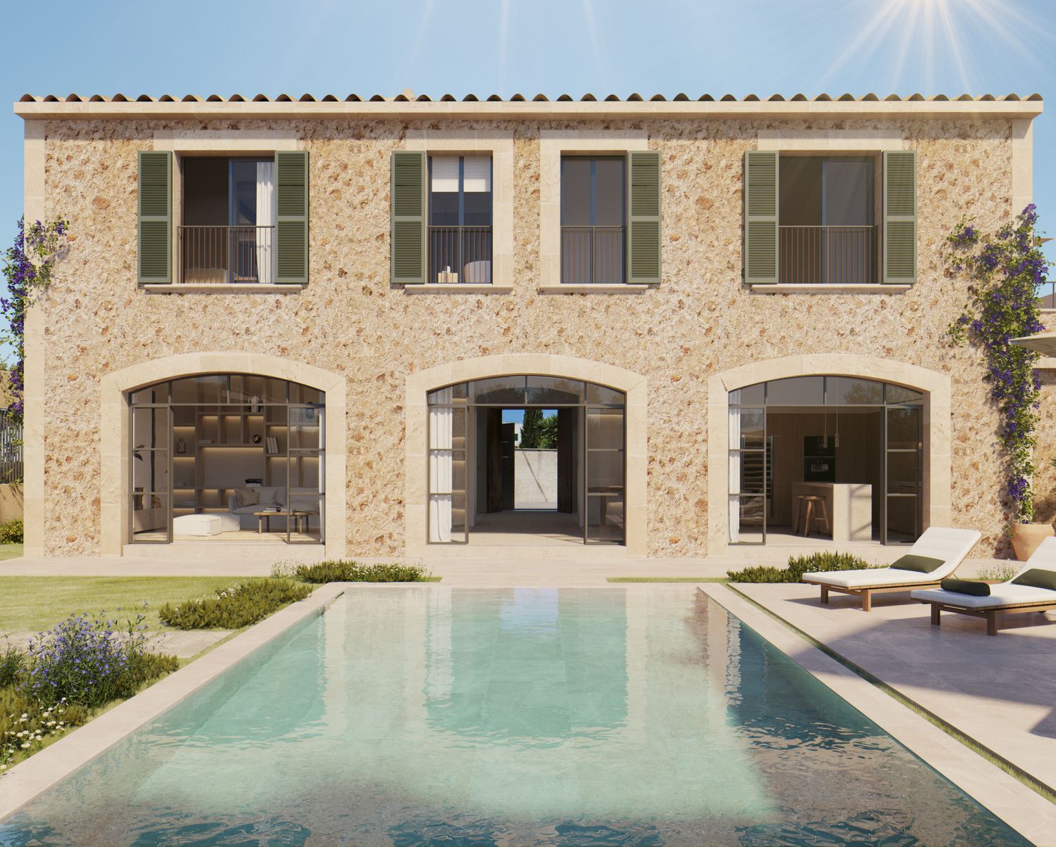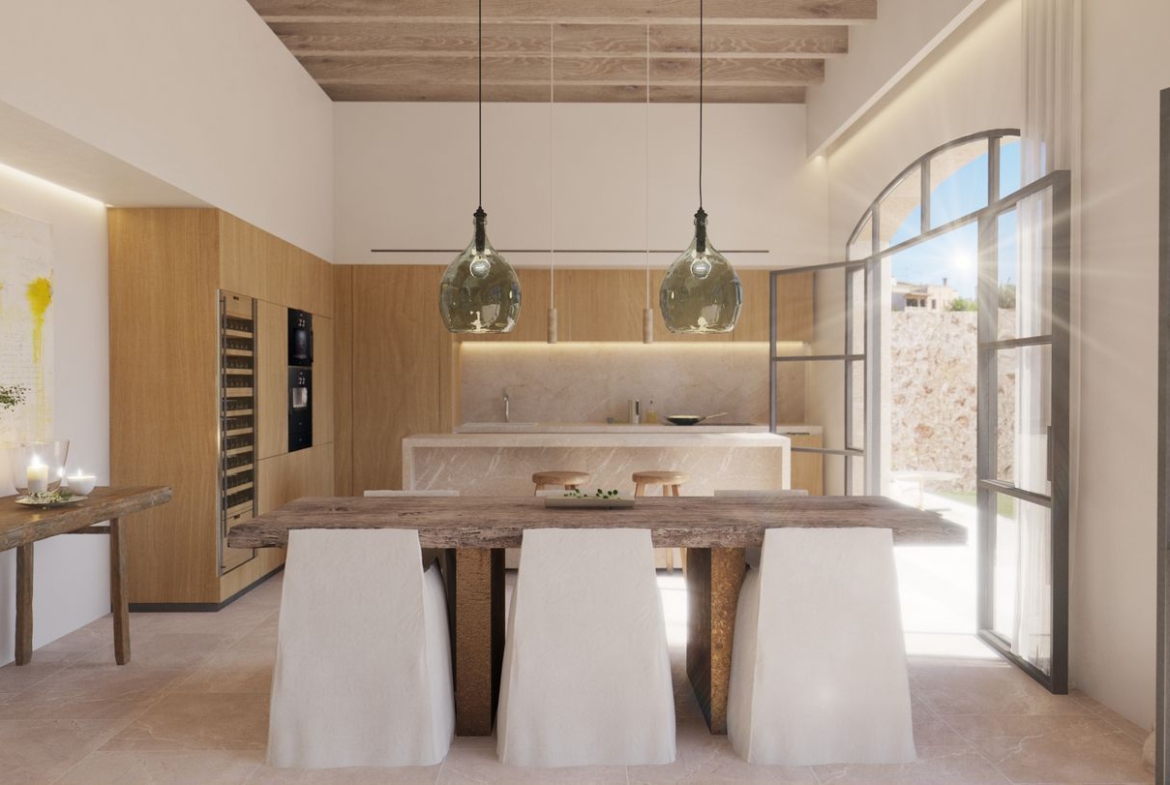 Una amplia zona de cocina abierta y salón-comedor, con casi 50 m², muy luminosa, y con salida directa a un encantador jardín privado con piscina de 7,5 x 4 metros, perfecta para disfrutar del aire libre y la tranquilidad del entorno.