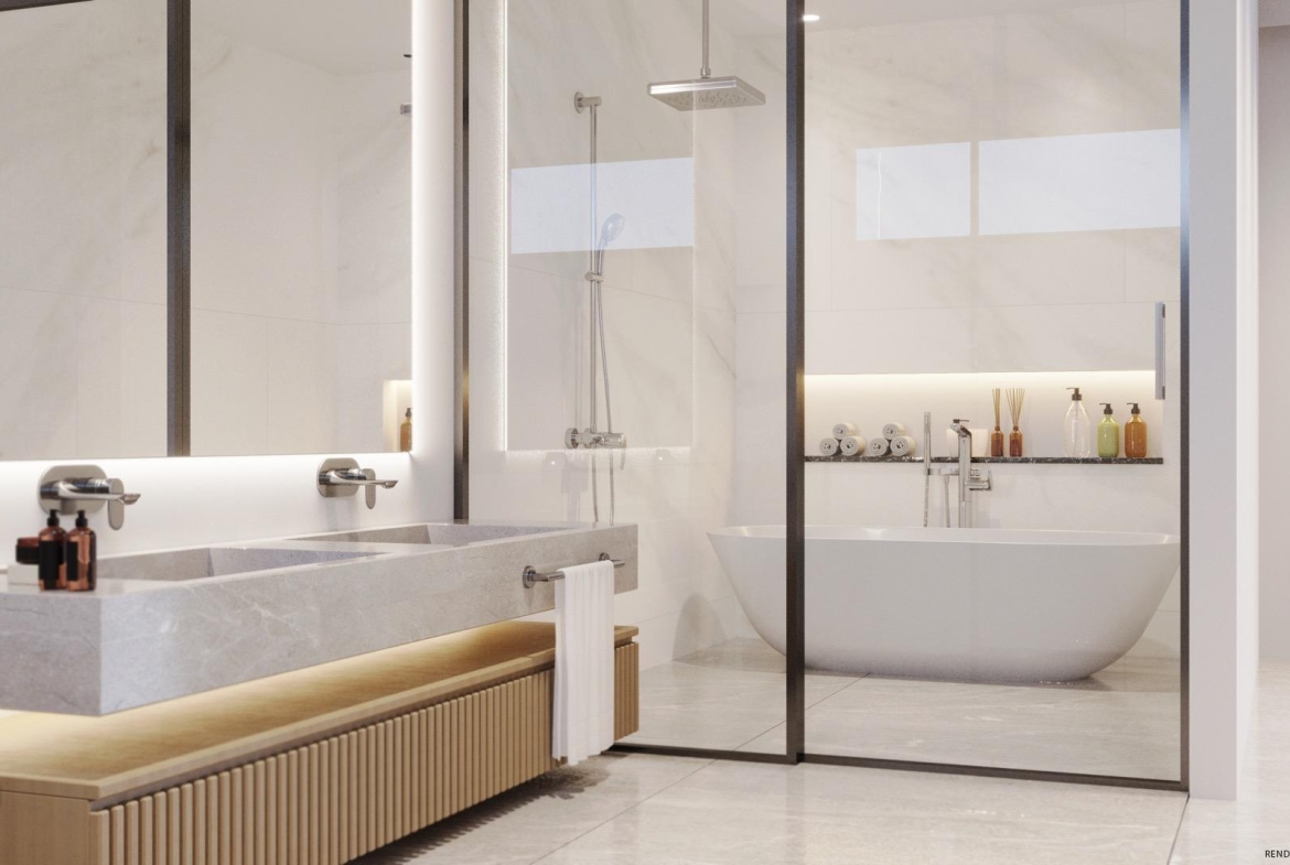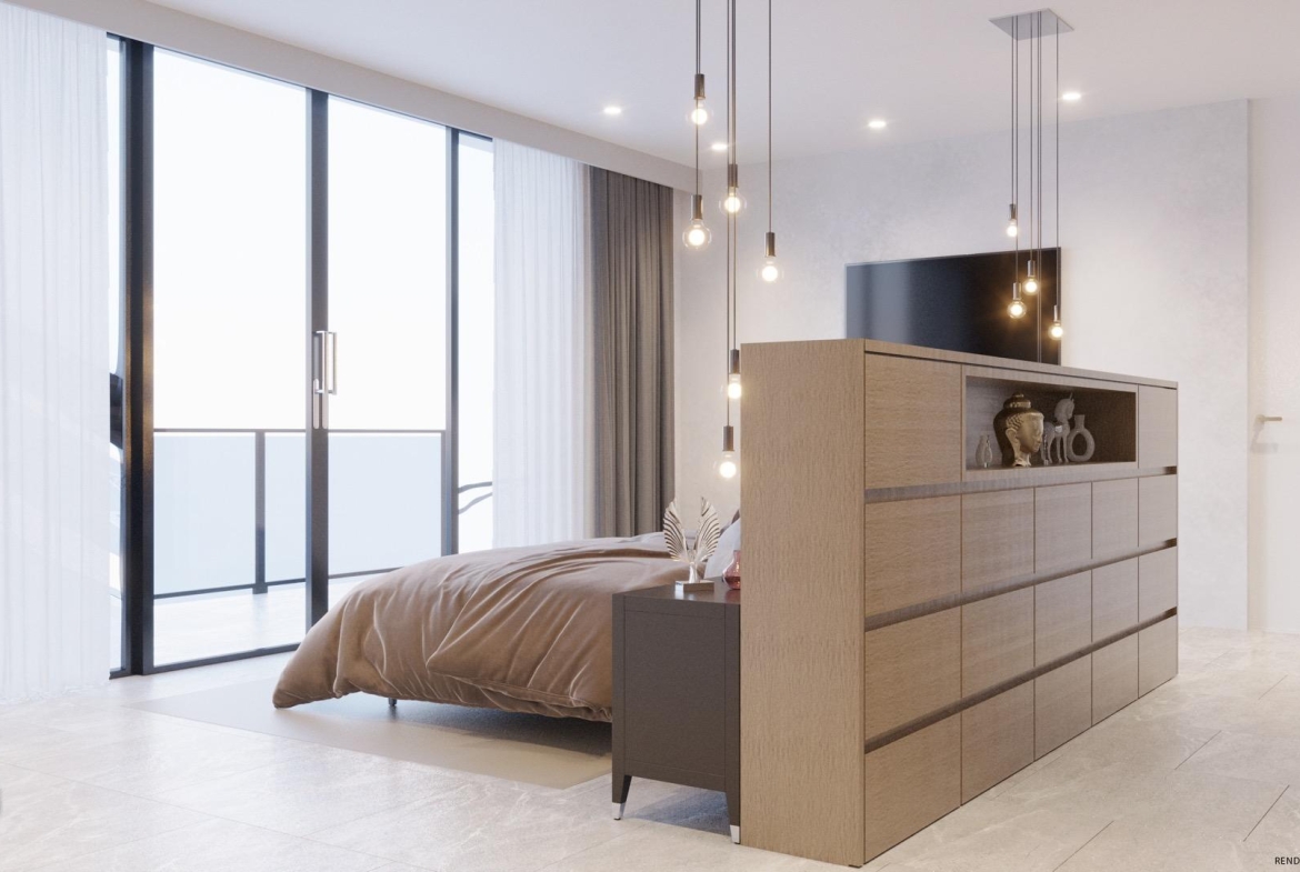 Dormitorio principal con baño en suite, vestidor y acceso a una terraza privada.